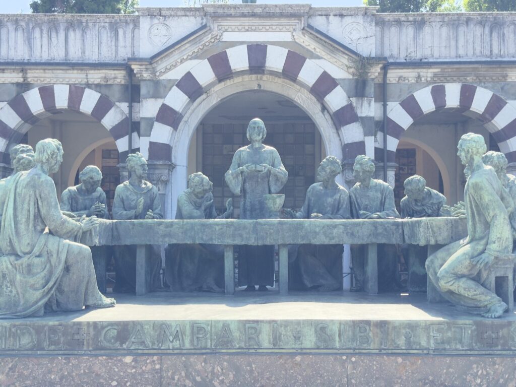 Later, we wandered into the university district for a coffee, then made our way to the Monumental Cemetery, which opened in 1866. More than just a cemetery, it is an open-air museum with extravagant mausoleums built by Milan’s most influential families. Walking through it feels like traveling through history.