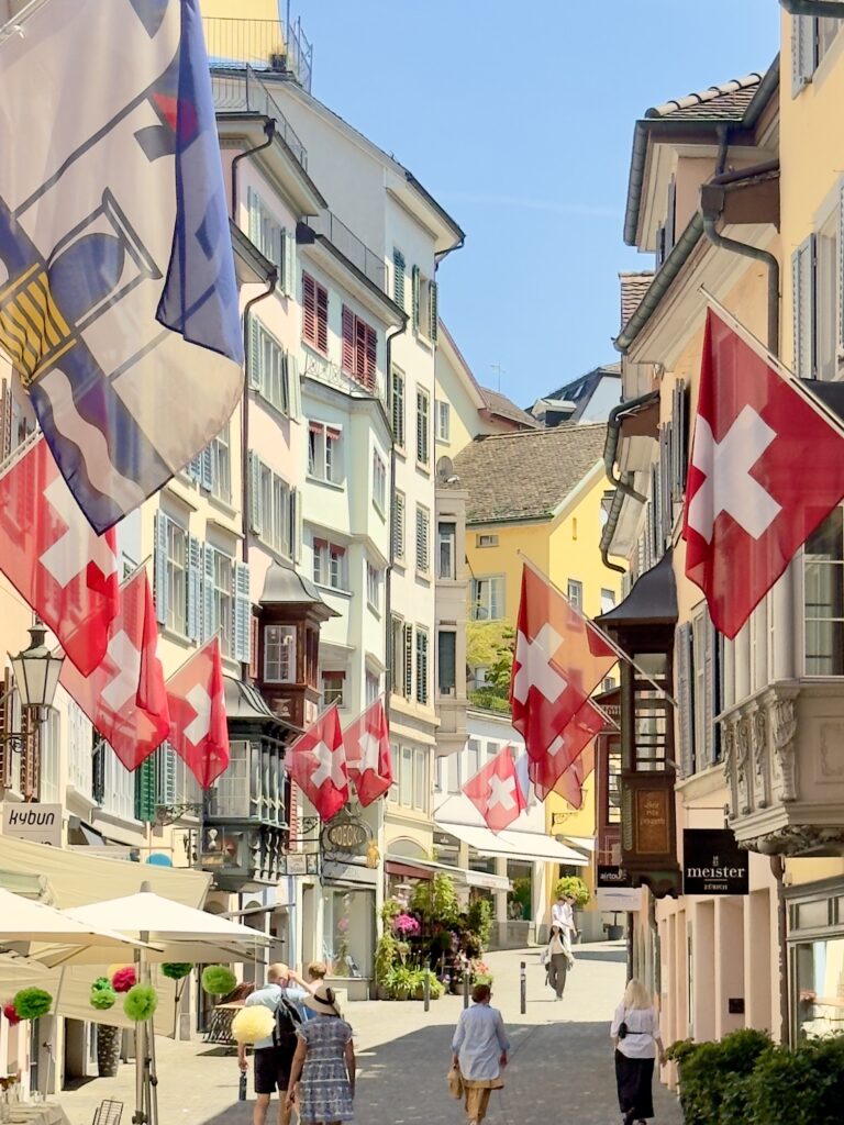 The next morning, we wake up slowly. From our room, we watch the trains rushing below, almost hypnotized. Zurich still shines with Pride colors, rainbow flags waving all around the city.